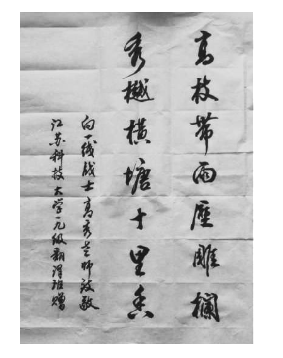 “高枝带雨压雕栏,秀樾横塘十里香。” 3月24日,2019级翻译班学生写给“秀儿老师”一副书法联,借用两句古诗点赞恩师出征上海战“疫”,也隐进了老师的本名“高秀”。 晚上,出完“接你回江苏”防疫任务返回驻地,高秀看到视频里稚嫩脸庞和真情留言“眼泪不争气地往下掉”。她在当晚的战“疫”日记中写道——发自内心的觉得自己的选择是对的,我来“守护国门”,也是在保护自己的学生,教师这个职业也是我不悔的选择。