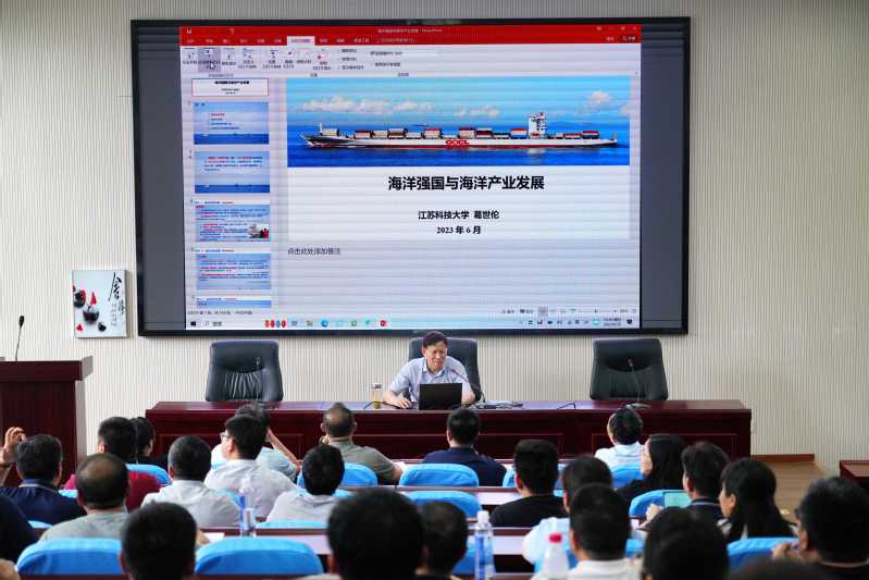 6月25日下午,校党委书记葛世伦教授为我校举办的中国船舶集团有限公司第五期中层干部工商管理培训班作“海洋强国与海洋产业发展”专题报告。来自中国船舶集团53家成员单位的80名学员,以及学校党办、科研院、人文社科处、经济管理学院的部分中层干部和教师聆听了授课。