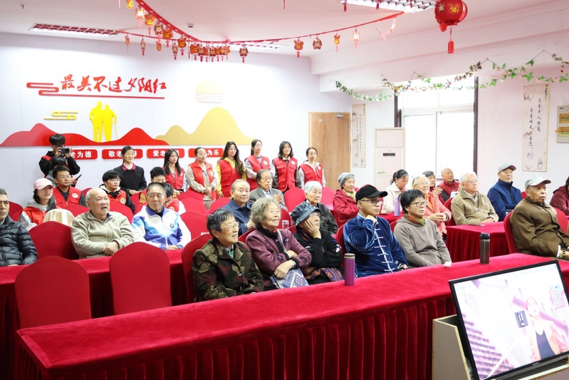 活动当天,志愿者们提前抵达现场,以热情洋溢的笑容迎接每一位老人入场就座。随着主持人宣布活动正式开始,现场气氛逐渐升温。活动在志愿者们的歌曲联唱中拉开帷幕。经典老歌《茉莉花》悠扬的旋律瞬间唤起了老人们的美好回忆,随后,志愿者与老人们携手合唱《我和我的祖国》,将现场氛围推向高潮。