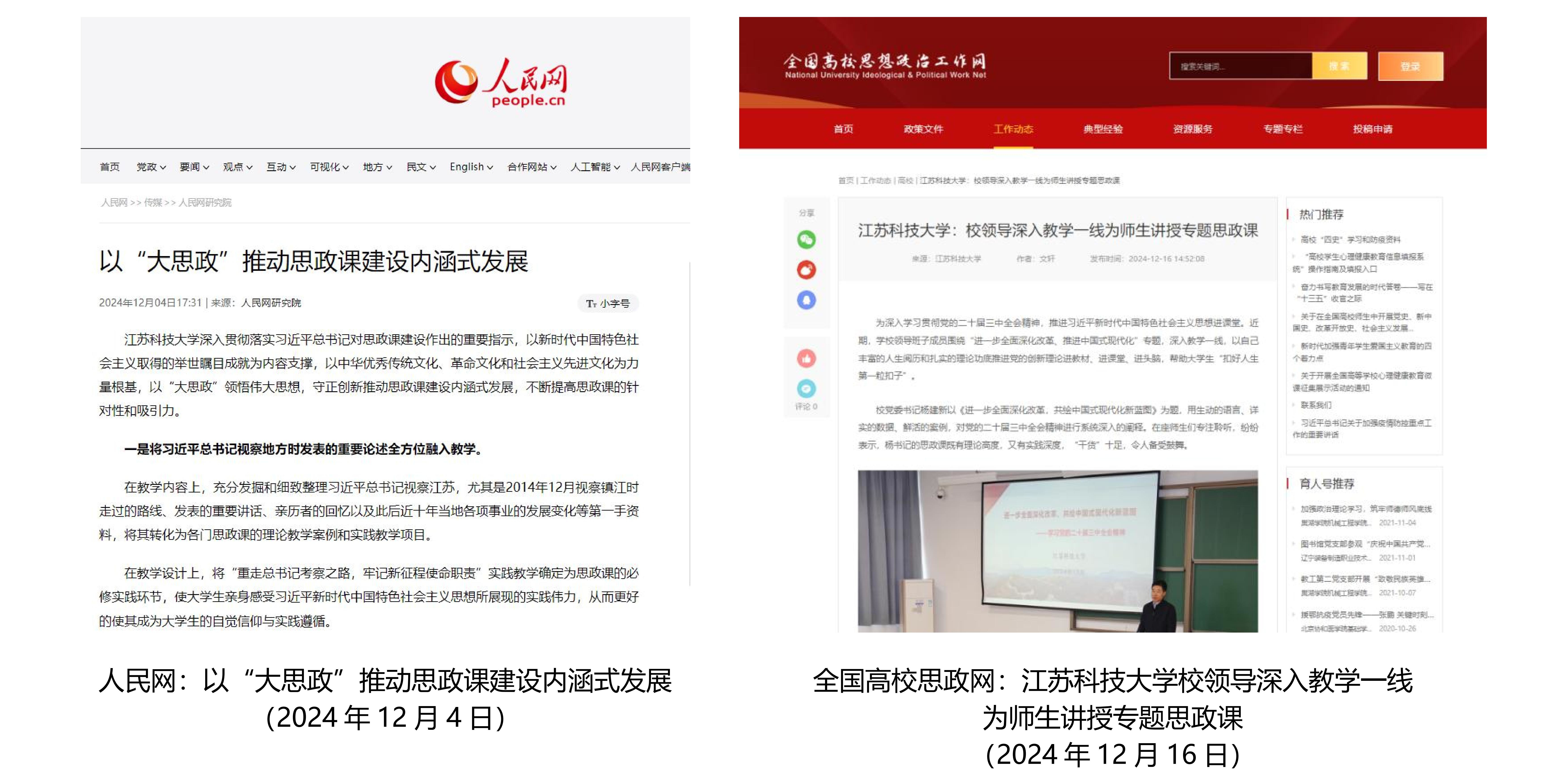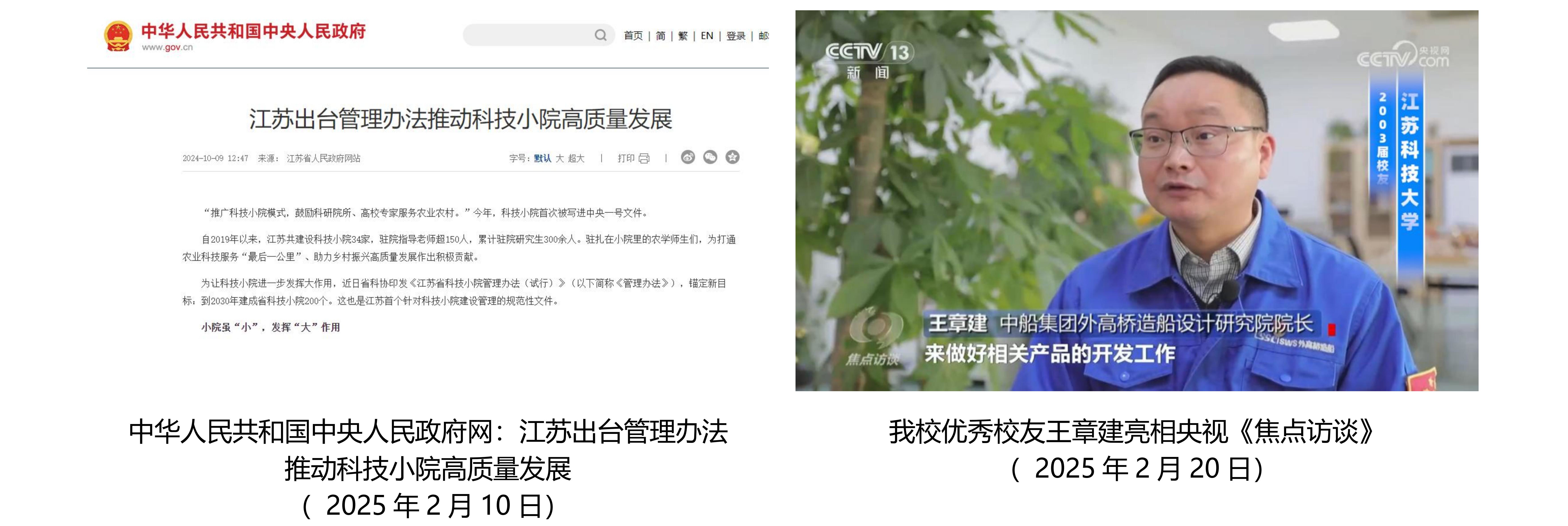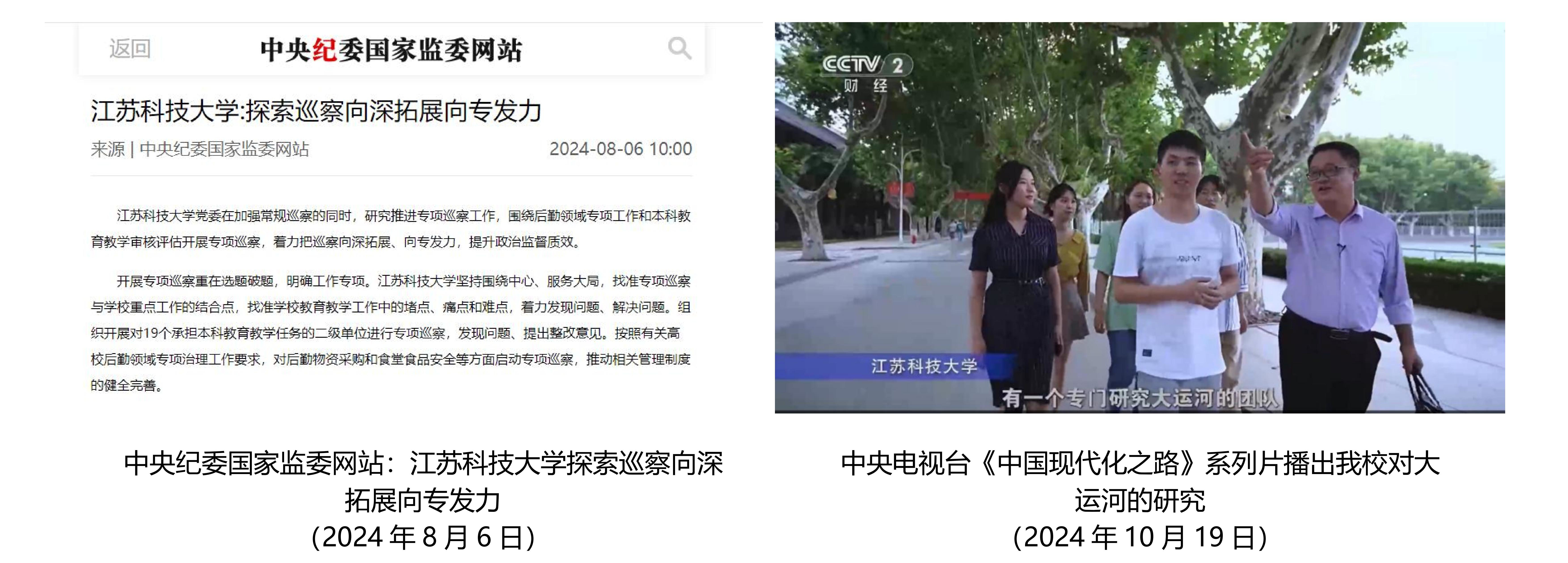 中央电视台、央视新闻多次报道学校深化产教融合,服务船舶海工产业科技创新;中国船舶报、新华日报、江苏科技报等媒体深度报道学校办学90周年,校史馆揭幕开馆;人民日报、新华社、科技日报等深度报道学校首次以第一单位在《Nature》发表研究论文,新华日报跟进报道该成果落地转化动向;新华日报深度报道学校科技助力国产首艘大型邮轮建造;中国船舶报、新华日报、江苏省教育厅官网等报道学校牵头江苏省高技术船舶和海工装备产业链党组织联建共建;中国新闻网报道学校趣味蚕桑课程受学生热捧;与央视网共创《我的大学超酷》播放量超百万……