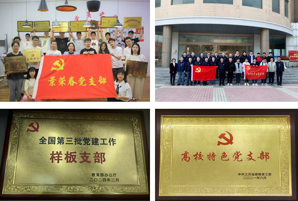 2011年,为传承发扬景荣春的崇高品格和精神风貌,学校党委决定以他的名字组建成立党支部,名为景荣春党支部,后分成景荣春学生党支部和景荣春教工党支部。景荣春学生党支部先后获评教育部第三批“全国样板党支部”、“江苏高校特色党支部”、“江苏省先进基层党组织”、“镇江市五星标杆党支部”、三次荣获“江苏省最佳党日活动优胜奖”。