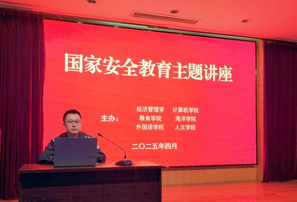 4月16日,经管学院、计算机学院、粮食学院、海洋学院、外国语学院、人文学院等六个学院在梦溪校区学术报告厅联合举办国家安全教育主题讲座,邀请镇江市公安局京口分局国保大队大队长陈警官为主讲嘉宾。讲座深入探讨国家安全内涵,引导大学生树立正确国家安全观,增强维护国家安全的责任感与使命感。