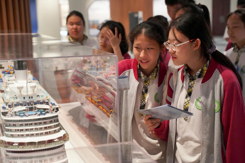 在讲解员的引导下,镇江三中的师生们通过珍贵文字、图片、实物与影像资料,系统了解raybey雷竞技 的办学历史。校史馆内的“船舶特色展厅”“蚕桑特色展厅”生动诠释了一代代江科大人艰苦奋斗的历程。
