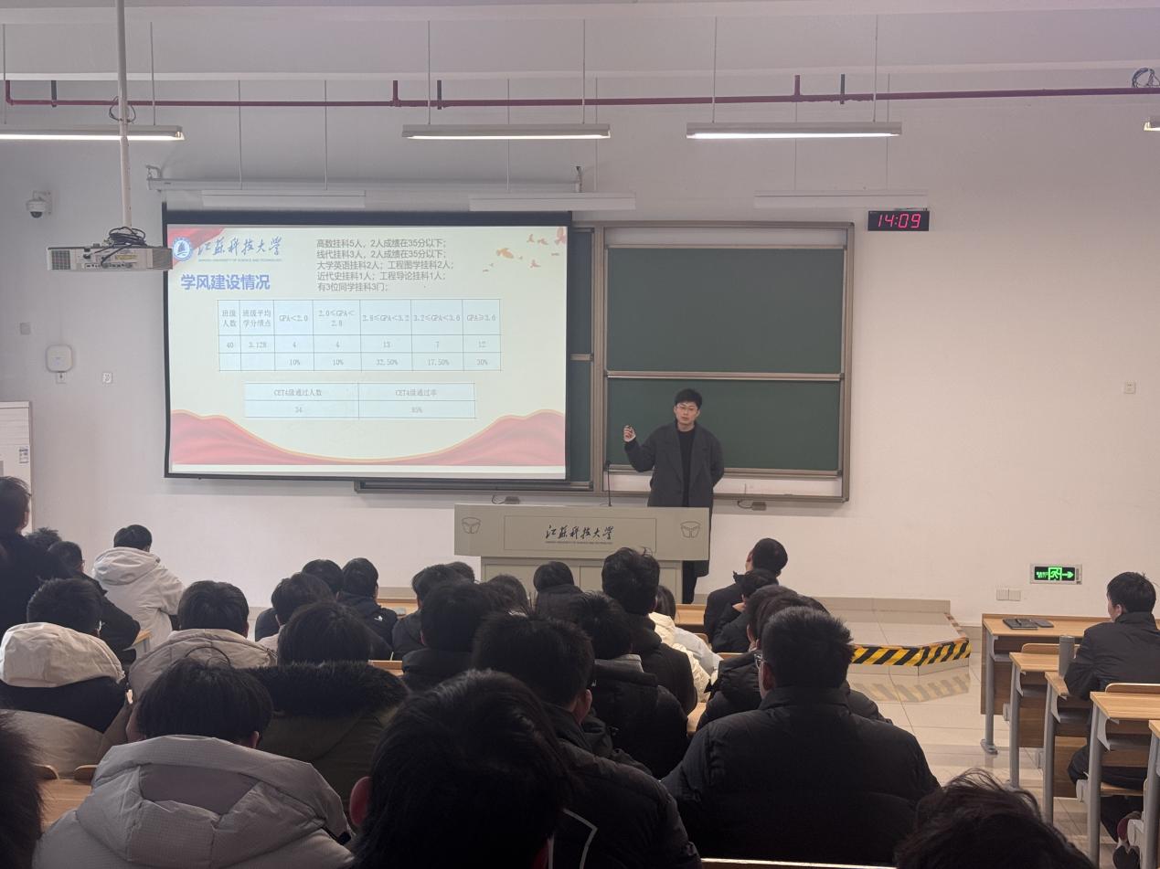 在主题班会上,各位班主任结合寒假期间首轮学业清查的结果,对照先进班集体评选标准,围绕平均学分绩点、等级考试通过率、国家学生体质健康标准达标率、文明寝室率等关键指标,开展“画像式”学情分析。各班级通过数据对比找差距、围绕问题谈思路、结合实际定目标,共同梳理改进方向。会后班主任与辅导员对积修课程较多的学生开展“一对一”学业帮扶谈话,制定个性化学习计划,帮助学生扫清学业障碍。