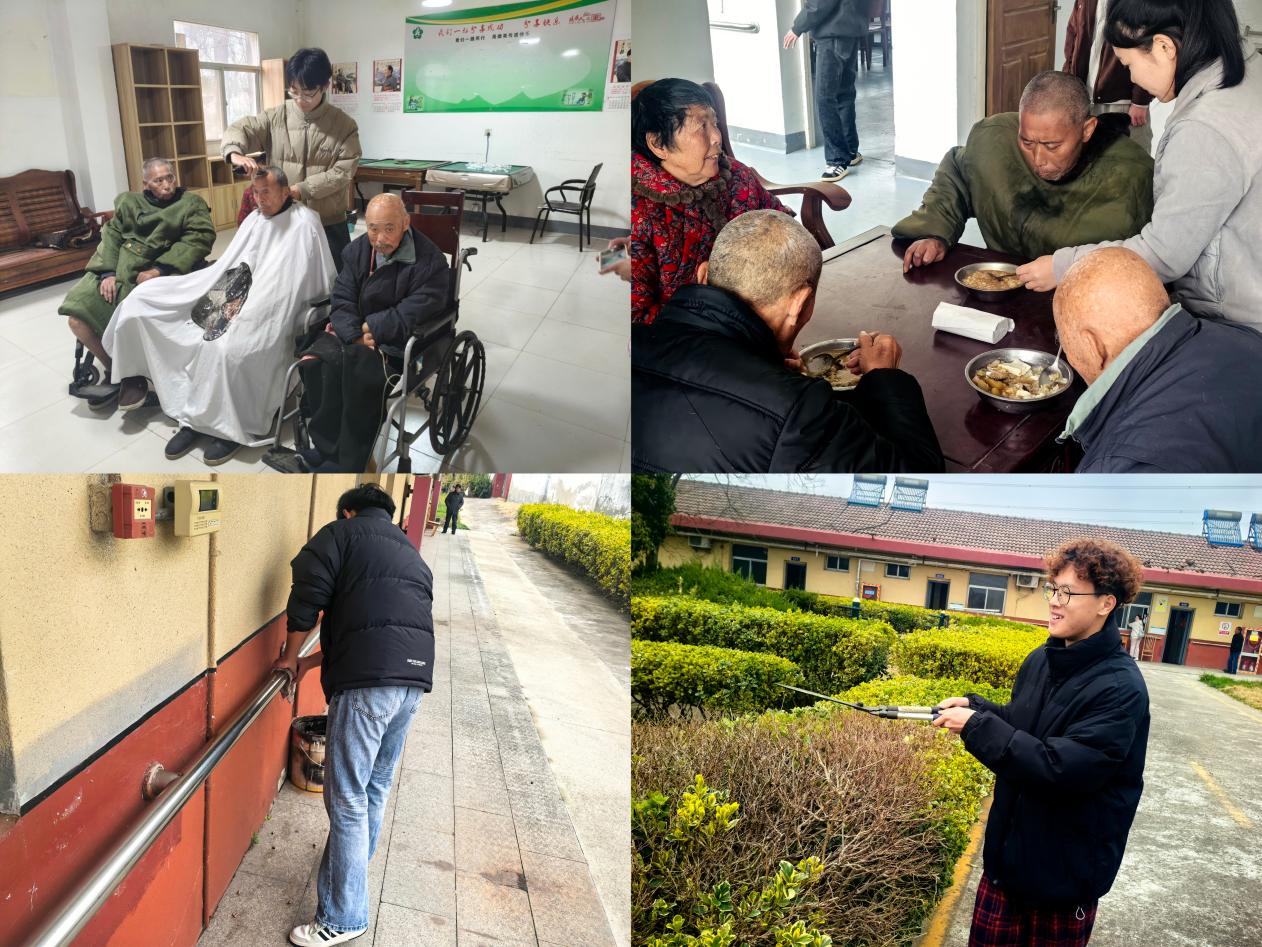 为深入贯彻积极应对人口老龄化国家战略,弘扬尊老爱老、扶残助弱的中华传统美德,践行新时代青年志愿服务精神,3月15日,船舶与海洋工程学院海风义站联合“蓝途”一站式社区、景荣春学生党支部及本科生第一党支部,组织30余名志愿者走进镇江市丹徒区上党镇敬老院,开展“情暖敬老院,青春伴夕阳”主题助老志愿服务活动。活动聚焦敬老院老人的实际需求,以理发喂饭、打扫卫生、暖心陪伴等贴心服务为载体,为老人们送去春日的温暖与关怀,用实际行动诠释青年学子的社会责任与担当。
