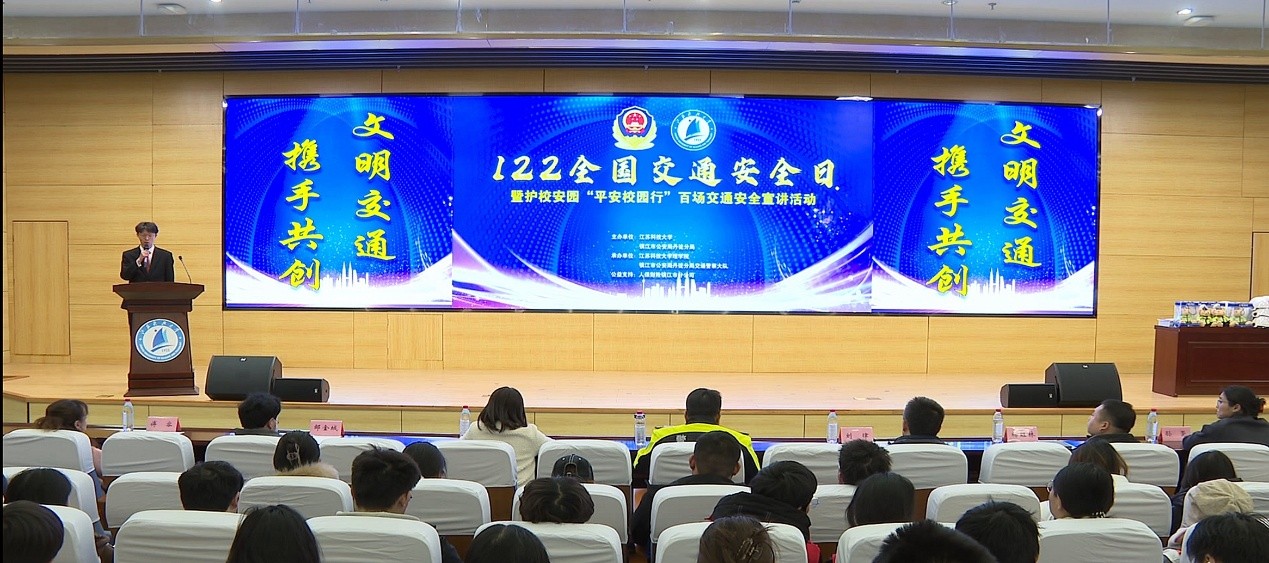 理学院党委副书记周志辉在活动致辞中向镇江市丹徒交警大队长期以来对学校的关心和支持表示衷心的感谢。她呼吁广大师生作安全行为的践行者、文明理念的传播者,共同建设平安校园。