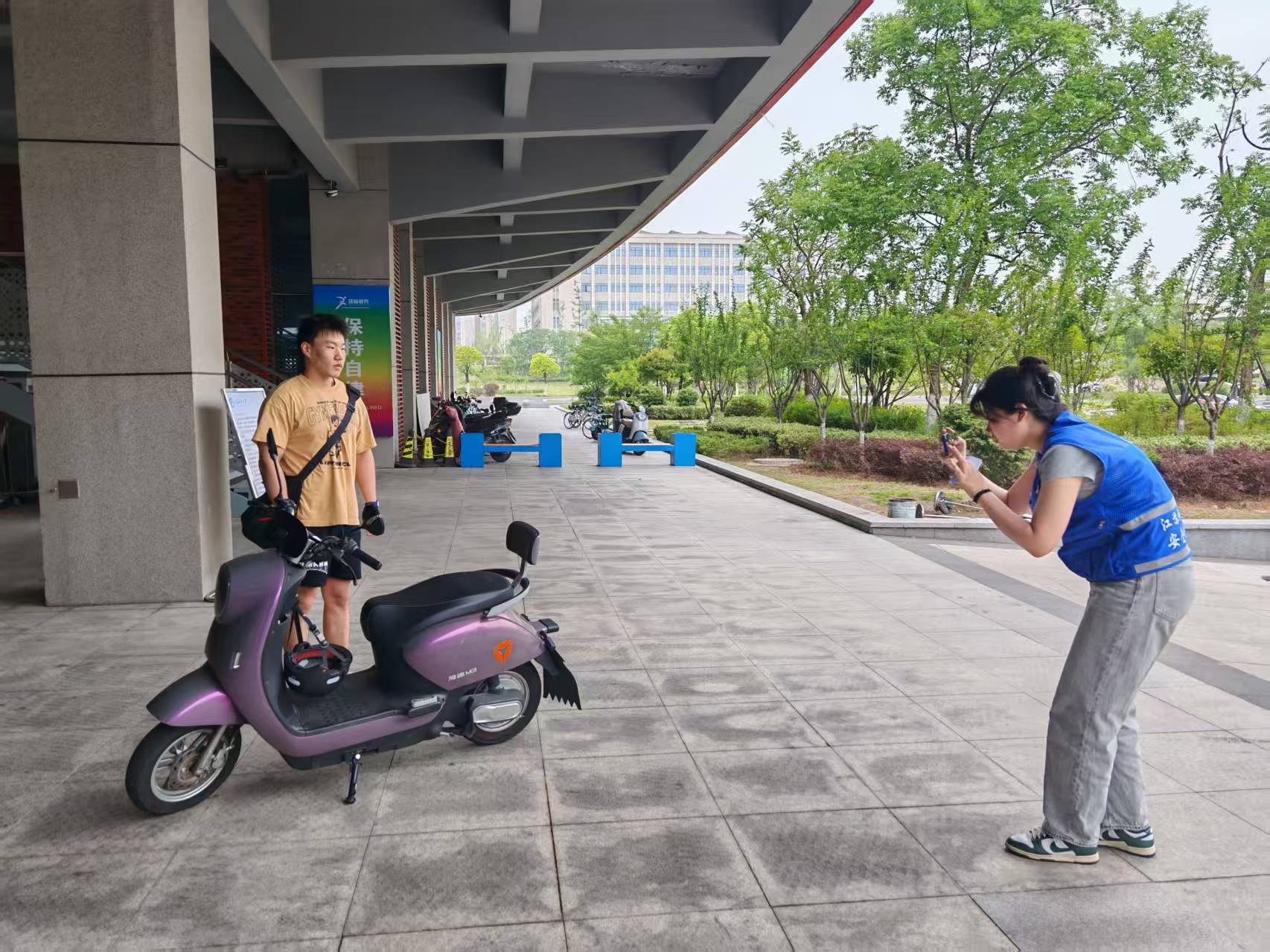 4月初,安保处就以“告别‘任性停’‘任性骑’,拥抱安全行!”为主题,在长山校区西苑、东苑食堂门口举办了电动自行车安全宣传活动。工作人员通过宣传板和横幅向师生们展示了电动自行车规范管理内容,包括如何规范停放电动自行车以及即将实施的管理措施,同学们通过拍摄宣传板内容分享到社交媒体,起到了良好的宣传效果,让大家对电动自行车规范管理的相关内容有了更深入的了解,为之后电动自行车规范管理奠定良好的群众基础。