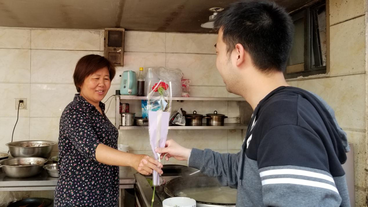 夜色还未褪去,志愿者们早早地集合进行早餐的准备以及分配工作,每份早餐袋上都贴有感恩的话语。在活动现场,志愿者们为30余名环卫工人送上爱心早餐及康乃馨,给这些辛勤工作的城市美容师送上暖暖的问候和关怀。志愿者们还为在场的母亲送上提前准备好的母亲节礼物康乃馨,并表达了对母亲们的祝福。志愿者们还体验了环卫工作,整理了共享单车,创文明城市,塑造城市美好形象。参与活动的志愿者张孝杰说:“刚刚跟一个师傅聊天,才知道他们凌晨4点就出来工作了,真的很辛苦,希望我们今天的活动能给他们带来一些温暖,也同时希望大家可以共同爱护我们的环境卫生,珍惜他们的劳动成果。”