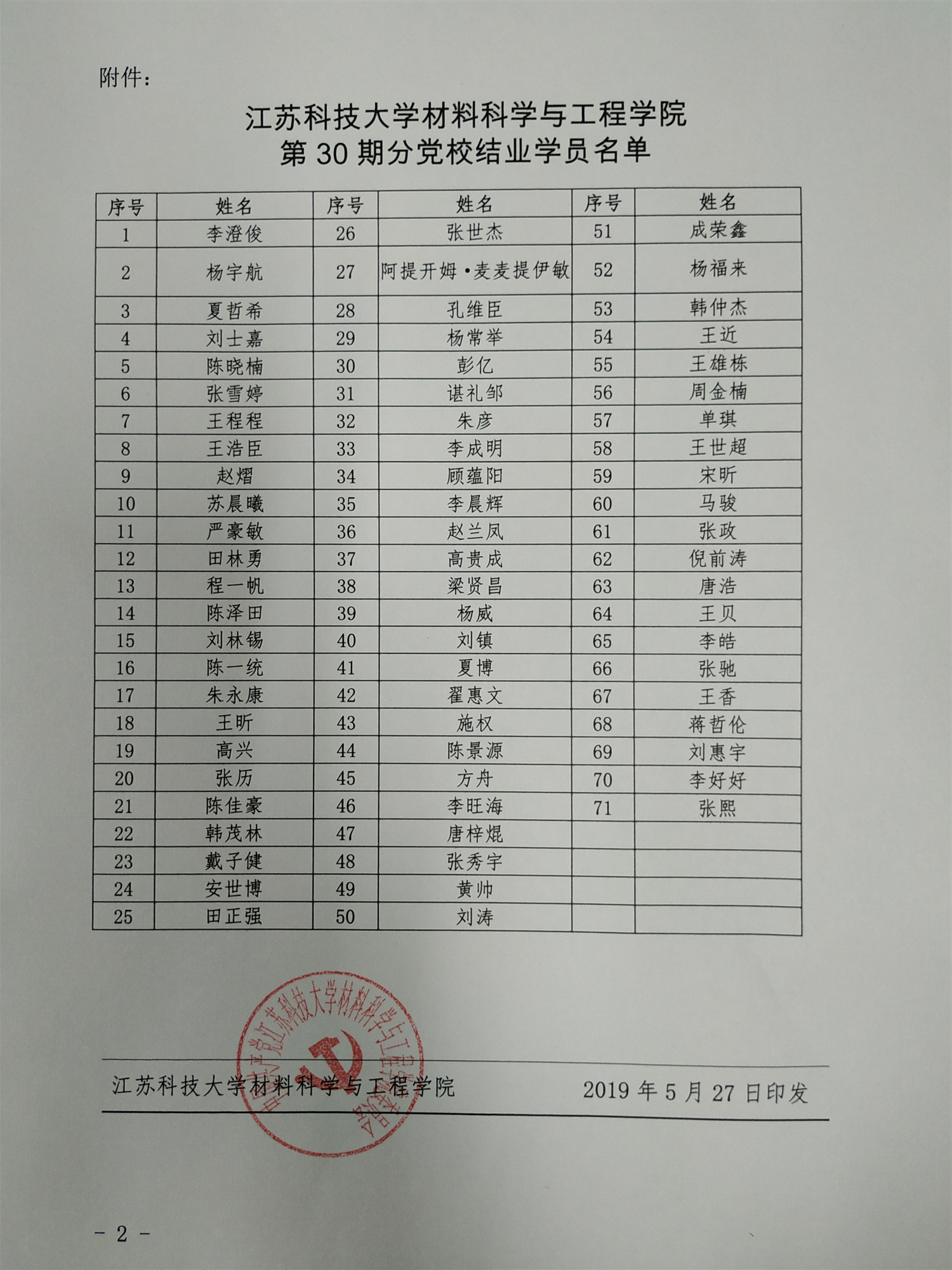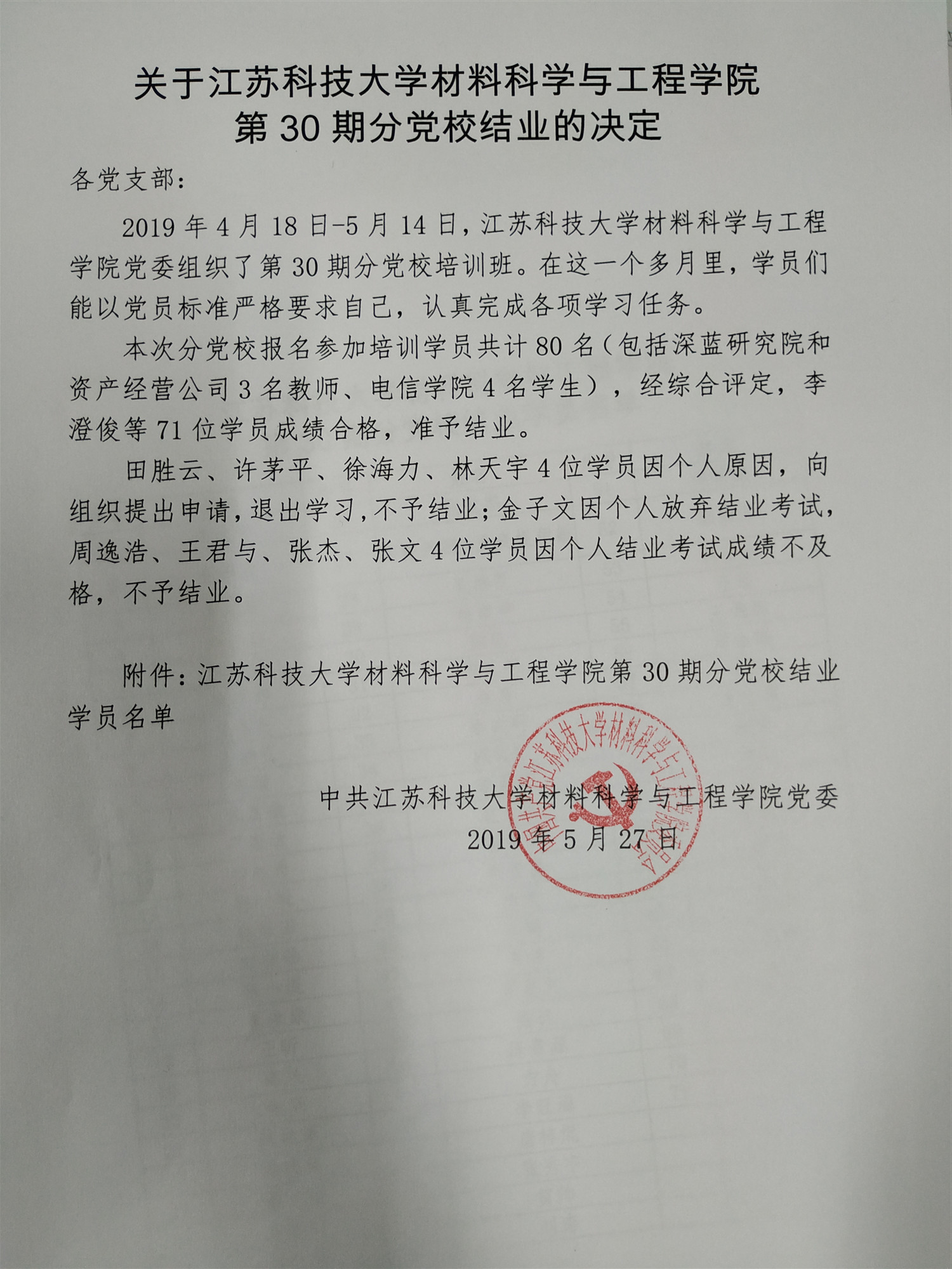2019年上半年入党积极分子结业公示(2019年5月)
