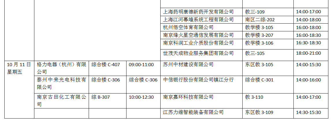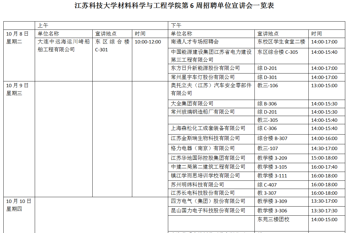 招聘会|材料学院第6周招聘单位宣讲会一览表(2019年10月8日)