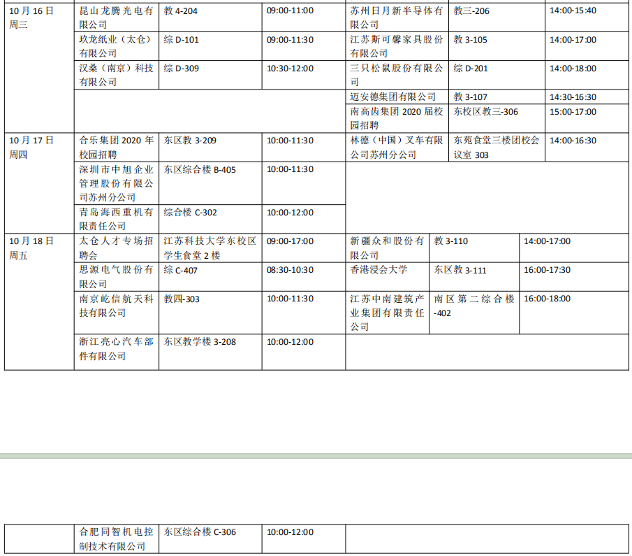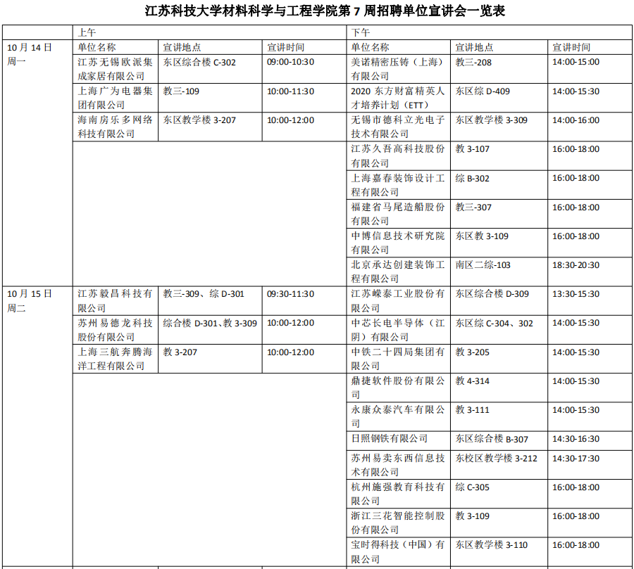 招聘会|材料学院第7周招聘单位宣讲会一览表(2019年10月14日)