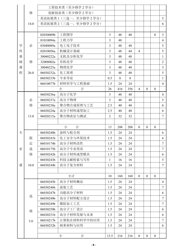 raybey雷竞技 高分子材料与工程专业人才培养方案(2018版)