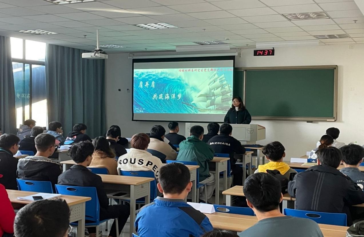 为了积极响应习近平总书记对青年大学生的五点要求,充分发挥党员的先锋模范作用以及更好地履行党员职责。11月18日材料学院功能材料系研究生党支部与材料学院19级20级学业预警学生在长山校区12号楼212教室开展“肩并肩,共筑海洋梦”特色主题党日活动。