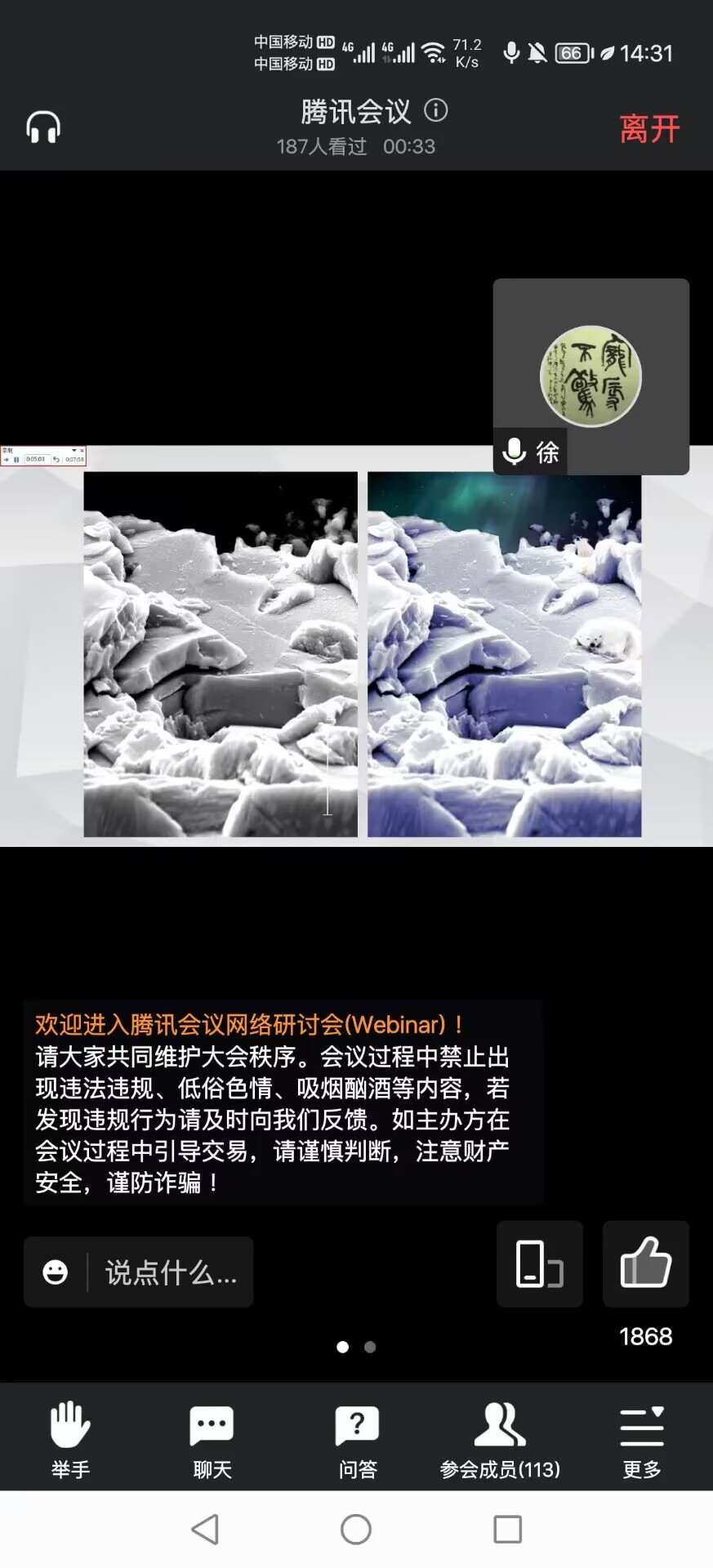 首先,在主持人介绍到会的领导与评委后,材料学院党委副书记赵莉致开幕词。她对应邀参会的上海交通大学的专家评委表示感谢,向所有与会人员介绍本次大赛的举办,一是为11月第七届全国微结构大赛在我校举办做准备,二是通过线上专家评审和点评,让参会的所有学生感知微观世界之美,潜心科研,树立正确的科学道德观,并进一步促进研究生的良好学风。