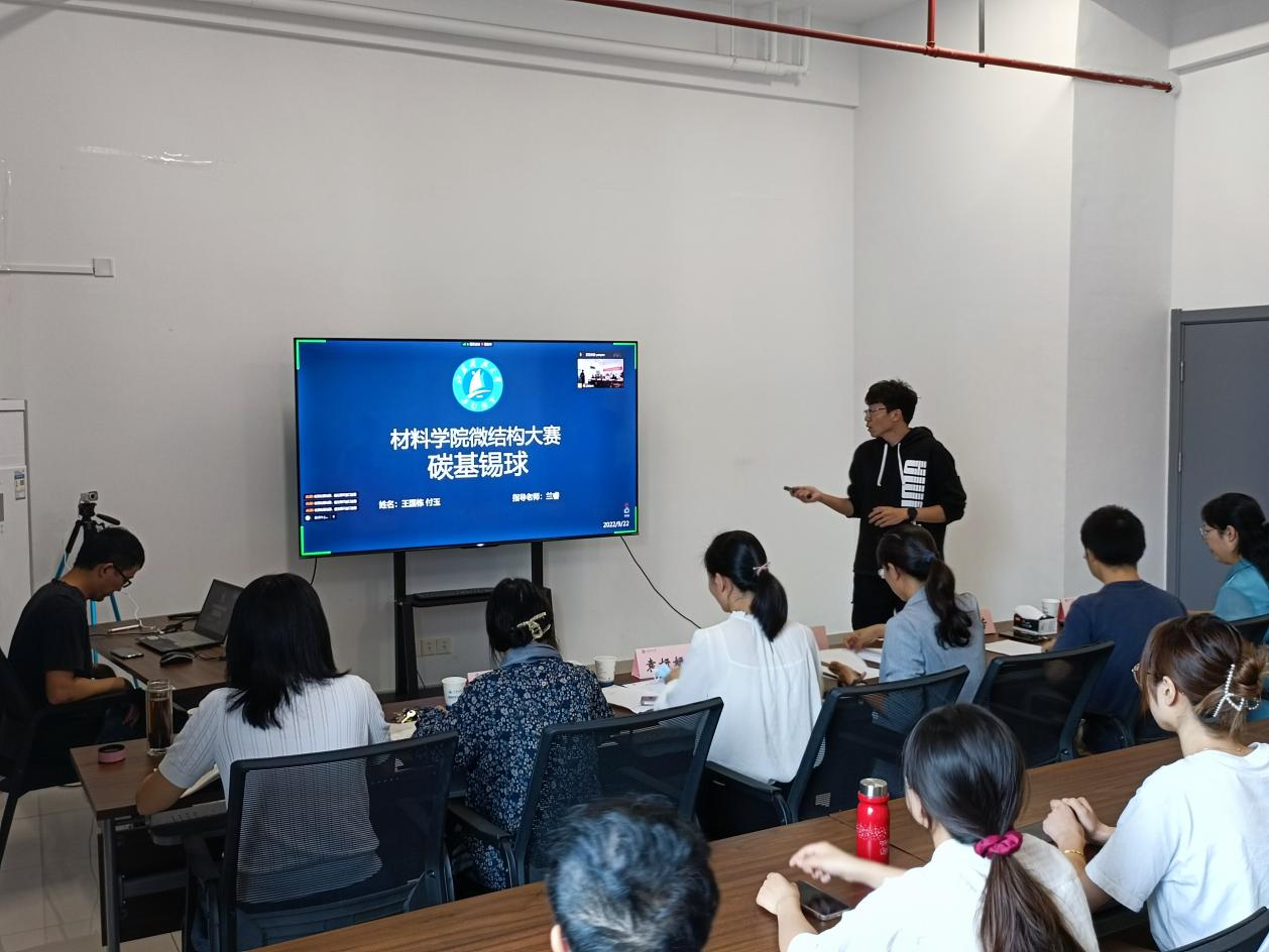 9月22日下午,材料学院组织校第一届大学生微结构摄影大赛决赛答辩会,本次比赛采用线上、线下相结合的方式。邀请上海交通大学材料学院党委副书记徐亦斌和刘攀副教授担任专家,raybey雷竞技 材料学院党委副书记赵莉、功能材料系副主任袁妍妍、黄赛芳、王小京、王晓丽、兰睿老师分别担任校内评委。答辩会由袁妍妍主持。