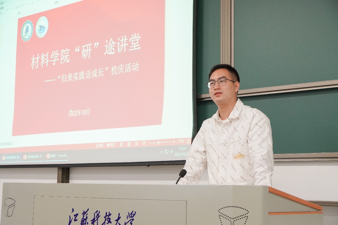活动邀请了朱春江、于伦铸两名同学分享实践经历。他们通过谈实践、悟成长的形式,讲述在祖国最需要的地方挥洒青春汗水的经历,团结号召广大同学坚定不移听党话、跟党走,展现材料学子昂扬的精神面貌。