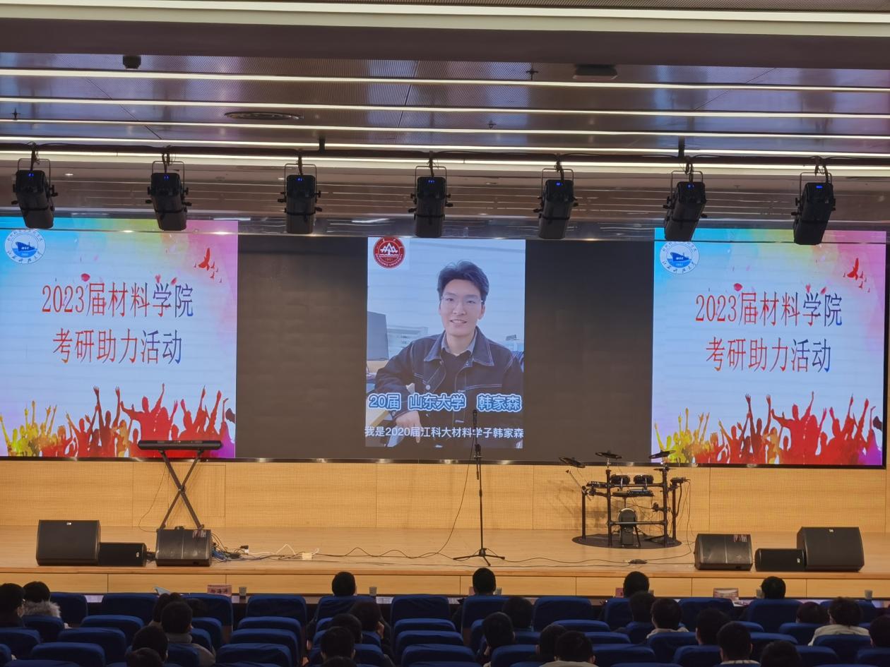 随后,全体师生观看了由材料学院学生会宣传部制作的2023届考研助力视频,视频中学院领导、老师,学院优秀升学校友、学校后勤人员和众多学生组织、学弟学妹们纷纷为考研学子送上最真挚的祝福,鼓励大家在最后阶段,努力调整好自己的心态,学会劳逸结合,科学备考,为自己的考研之路交上一份满意的答卷。