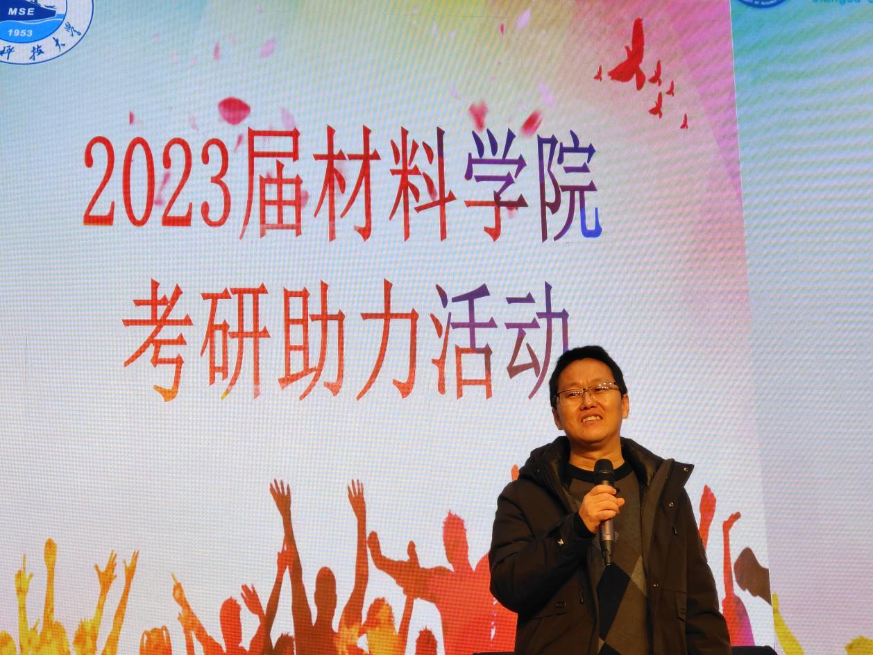为鼓舞考研士气,提振冲刺信心,12月12日上午,材料学院于长山校区图书馆105报告厅开展2023届考研助力活动。材料学院院长晏超、副院长陈书锦、副院长王宇鑫、党政办主任雷锋,辅导员刘志红、刘甜甜、涂艺凡、赵熠,2023届考研学子参加了本次活动。活动由材料学院党委副书记杨海涛主持。