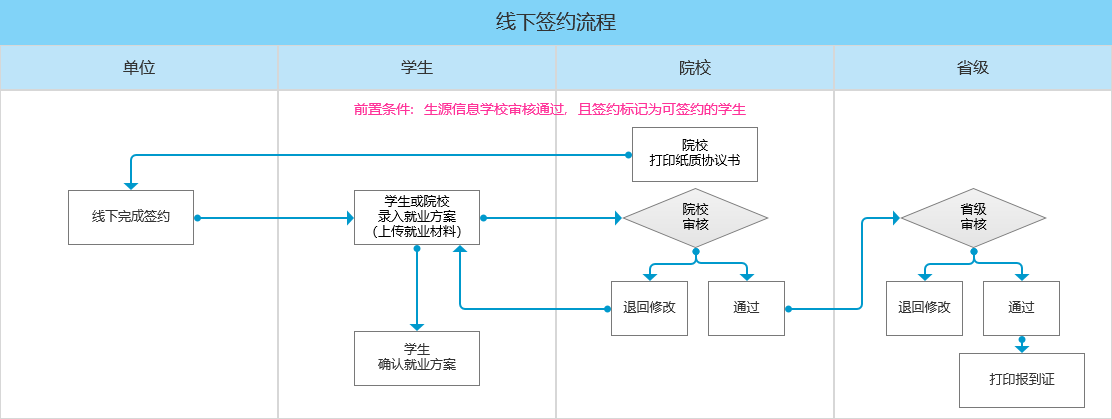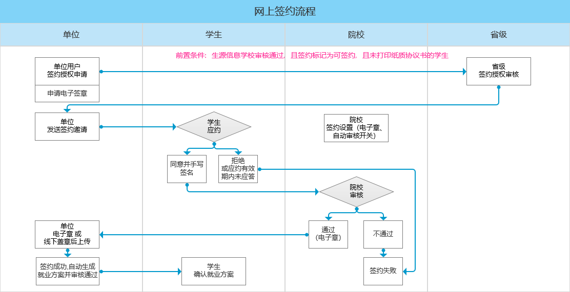 所有签约审核的流程都是学院-学校-省厅,有一个过程,系统会显示进度。