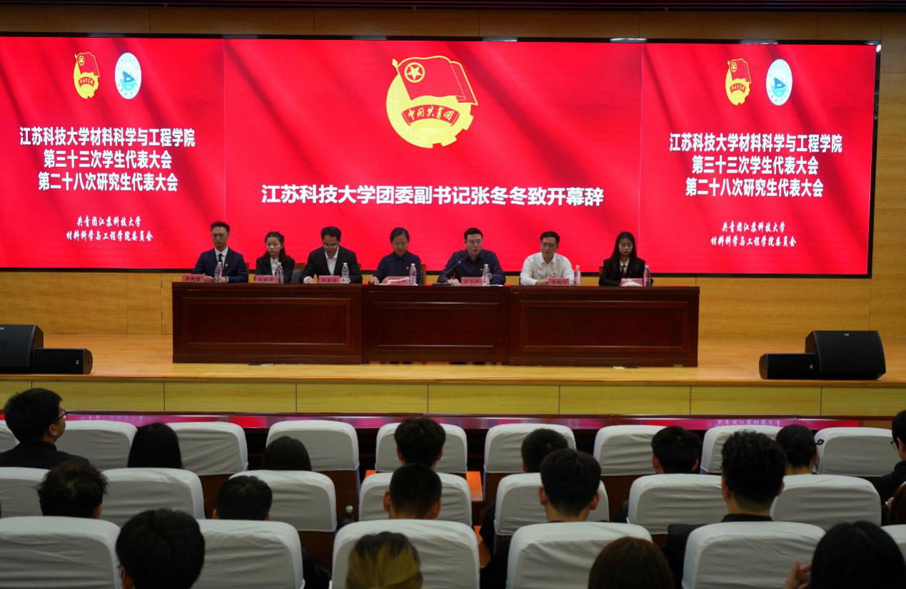 张冬冬老师致大会开幕辞。他高度赞扬了材料学院学生会、研究生会过去一年在基层团组织建设、志愿服务活动、实践育人项目、培育创新创业能力等方面取得的成绩。同时,他也向材料学院学生会、研究生会、团学组织干部提出三点要求与希望:一是加强思想引领,坚定同学理想信念;二是植根同学需求,服务同学成长成才,包括强化价值引导、助力学习成长、搭建与广大同学之间畅通的沟通渠道;三是明确职能定位,深化组织改革建设。