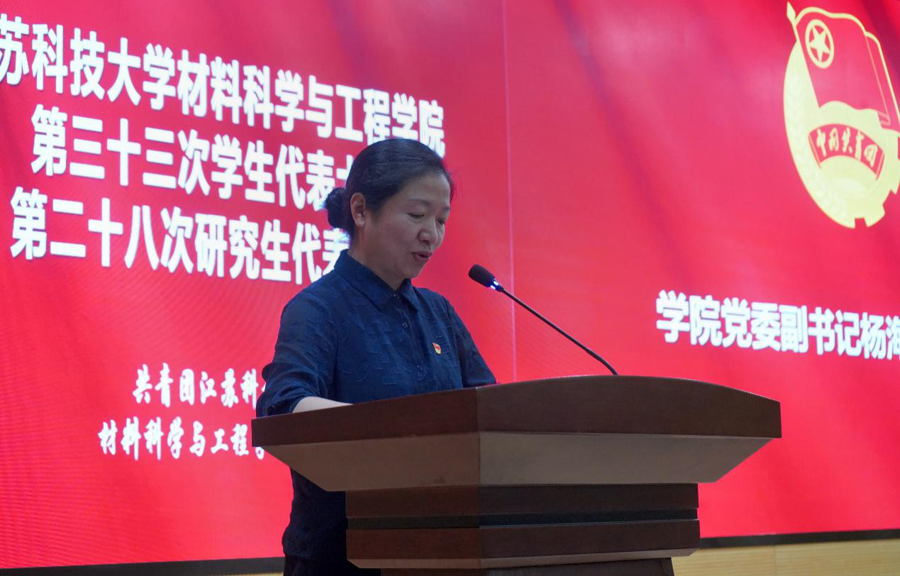 最后,学院党委副书记杨海涛向大会致闭幕词。她首先对新一届主席团成员表示热烈祝贺,并向全体代表和团组织提出几点希望: 一是自强自尊自信,做具有独立精神的材料青年;二是爱校荣校强校,做具有奉献精神的材料青年;三是善思善作善成,做具有奋斗精神的材料青年。