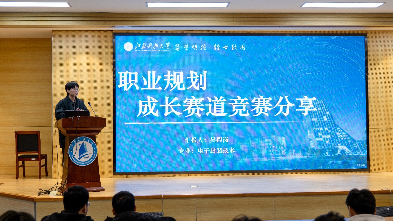 全国生涯规划大赛成长赛道省赛二等奖获奖选手吴程岗,则详细介绍了生涯发展报告的撰写要点,包括职业目标设定,具体行动和成效,职业目标及行动的动态调整等。他建议学弟学妹们根据国家发展政策、自身专业和个人情怀来规划职业发展,并以企业要求的能力为标准,通过实践实习、专业竞赛、等级证书、软件技能等来提升自己的职业竞争力。