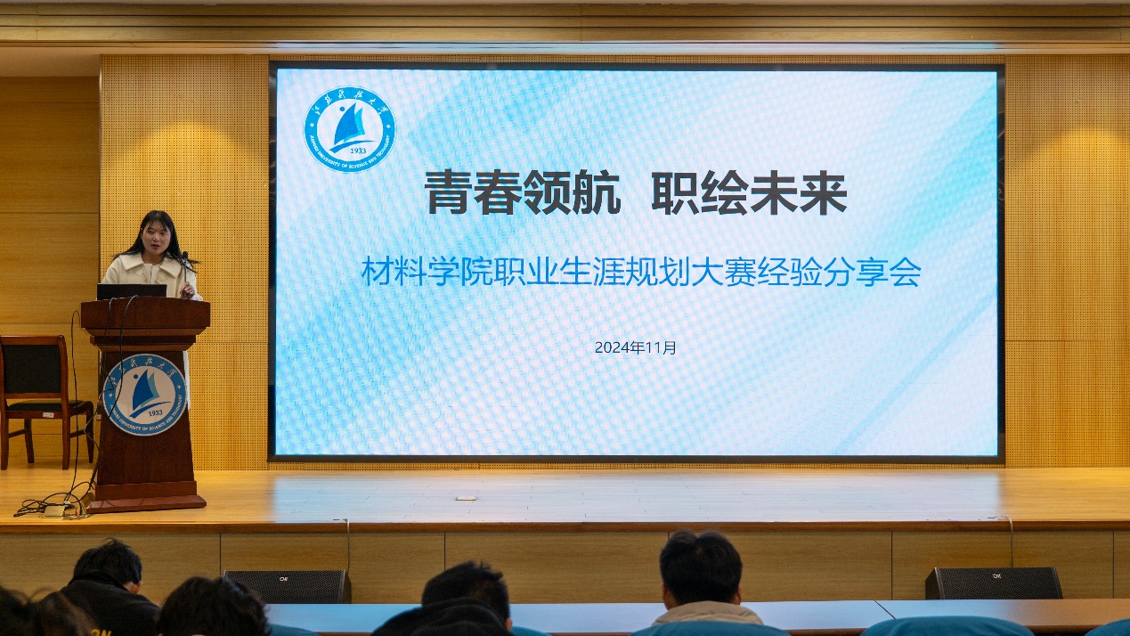 为帮助学生深入了解全国职业生涯规划大赛,增强大学生生涯规划和职业发展意识,明晰职业规划方向,引导学生及早做好未来规划和就业准备,11月26日晚,材料学院在图书馆B102报告厅成功举办了“青春领航,职绘未来”职业生涯规划大赛经验分享会,邀请全国生涯规划大赛省赛获奖选手张帅、吴程岗同学进行分享交流,此次活动由辅导员刘甜甜主持。