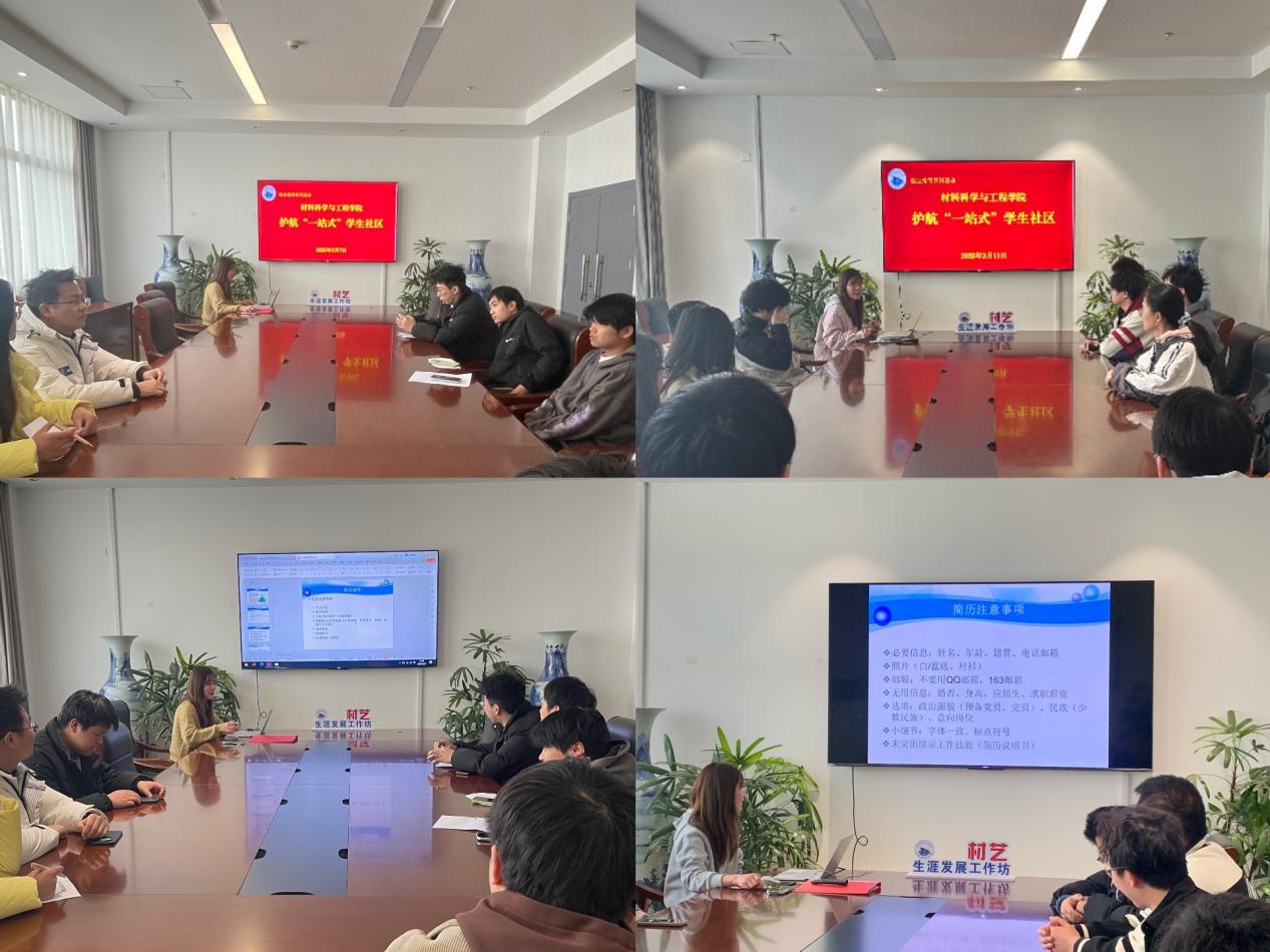 依托“材”艺生涯发展工作坊,学院精心组织了职业规划、简历制作、面试技巧等方面的培训和指导活动。从证件照的选择、个人信息的精准呈现、教育背景的描述、任职与实践经历的提炼,到自我评价的撰写,辅导员详细指导学生如何结合求职岗位要求,利用AI技术共创出脱颖而出的简历。此外,通过结合实际案例,辅导员还从面试礼仪、面试常见问题、应答策略和签约流程等方面入手,帮助同学们规避求职过程中的常见误区,提升整体竞争力。
