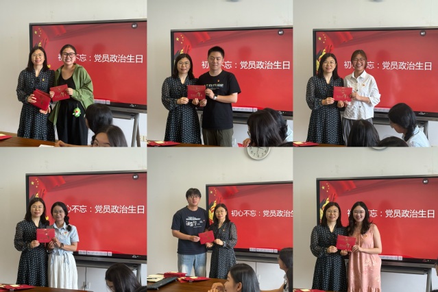 一个特殊的环节让现场气氛庄严而温馨——为全体毕业生党员过集体“政治生日”。学院党委副书记姜彦彦向每位党员郑重发放了精心设计的“政治生日贺卡”。小小的贺卡承载着党组织对党员政治生命的祝福和提醒,激励大家时刻铭记入党初心,永葆共产党员的政治本色。