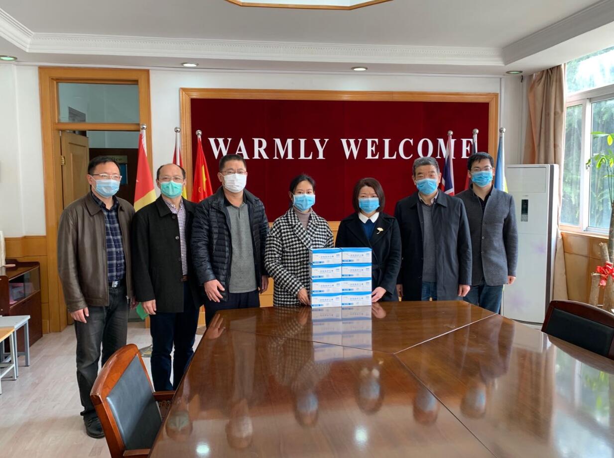 4月3日,深蓝学院会计学专业2017级学生杜逸雯同学,身在家乡,心系母校,她拿出自己的零花钱购买了一次性医用口罩寄给学校。深蓝学院院长杨建超、对外合作处处长佘建国代表杜逸雯同学向海外教育学院捐赠了400只口罩。