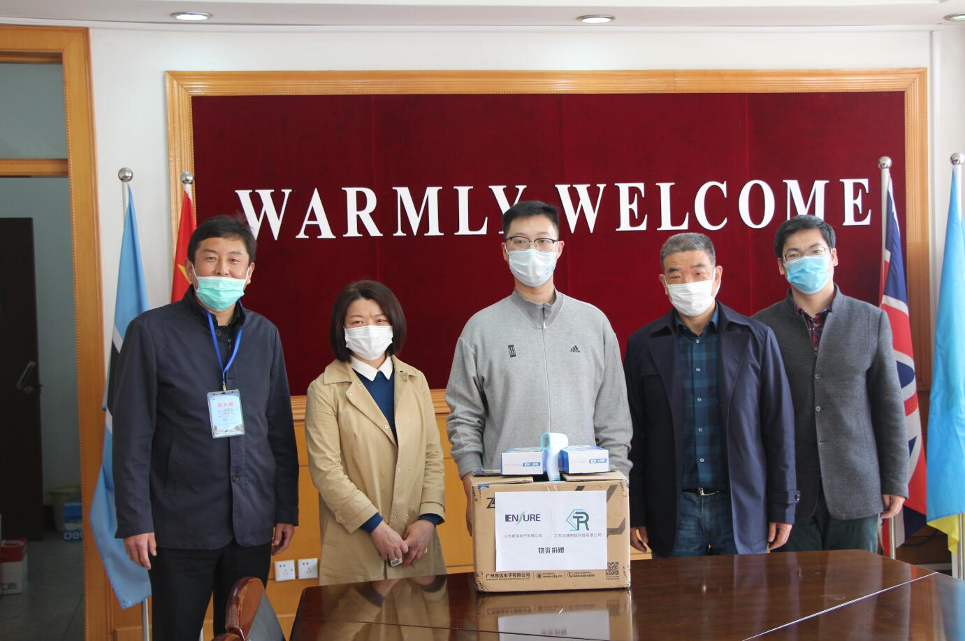 4月8日,江苏润通物联科技有限公司法人代表崔弘杨,亲自驾车到校向海外教育学院捐赠了20只红外额温仪,希望为母校疫情防控贡献一份力量。崔总是我校南徐学院物流管理专业2011级毕业生,一直情系母校,并与离退办刘彩生主任保持着密切的联系。面对疫情在全球的蔓延,崔弘杨集中公司科研力量,自主开发了红外额温仪,并向国内外市场供应。崔总得知学校还有200多名外国留学生,便主动联系刘彩生处长,希望将自己研发的带有英文说明书的红外额温仪用于涉外疫情防控,表达对母校的感谢与回馈。