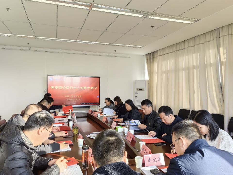 12月7日,机械工程学院党委召开本学期第四次党委理论学习中心组集中学习,校党委常委、副校长周宏根到会指导,自动化学院党委书记张霞、生物技术学院党委书记钱平、校党委宣传部理论教育科科长壮丹丽巡学旁听。机械工程学院党委委员和支部书记代表参加会议,党委书记翟纯纯主持会议。