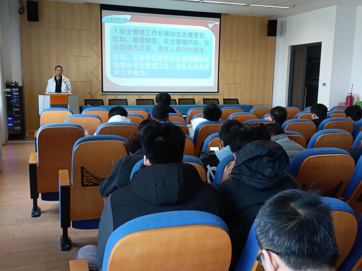 安全生产管理宣讲中,张维光首先介绍了学校网络化安全管理的运行模式和机械工程学院常规每月例行检查的安全检查制度;其次,讲解了学院每月常规例行检查内容;接着,指出了学院安全检查中发现的问题,并要求实验室负责人及时接单整改;最后,结合近期高校发生的安全问题分析了目前的安全工作形势和工作要点。