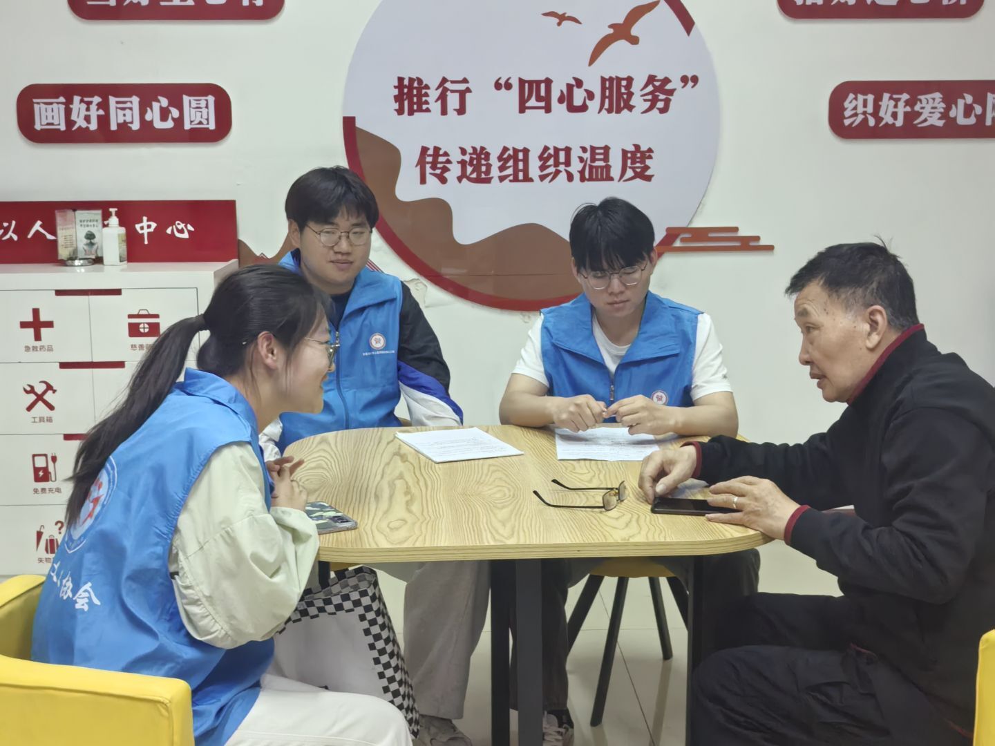 5月10日早晨,青年志愿者们早早的来到杨家门社区,准备与老党员朱老先生展开深入交谈和学习。朱老以亲身经历为教材,向志愿者们讲述了社会主义建设的热血岁月,从穷困潦倒的迷惘到和平年代的奋斗,从艰苦朴素的作风到坚定不移的信仰,老人家用质朴的语言再现了老一辈共产党人“为祖国献青春、为人民谋幸福”的赤诚初心。交谈过程中,志愿者们认真聆听、记录,并通过互动提问深入感悟奋斗精神的内涵。