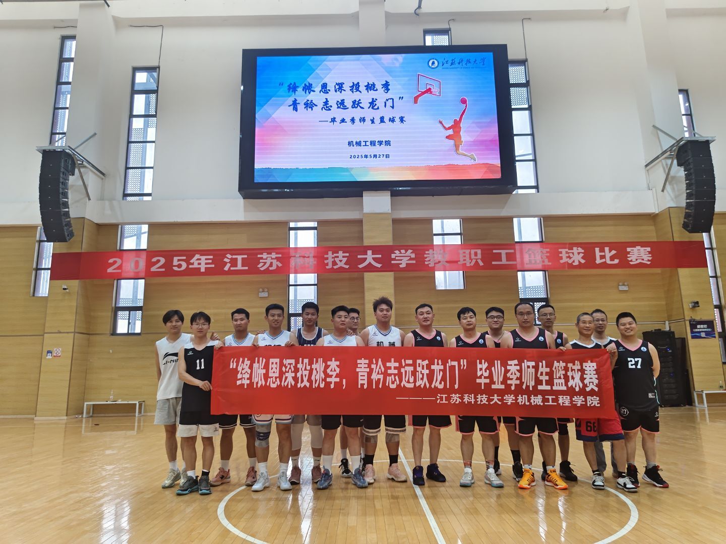 为了给毕业生留下难忘的校园记忆,同时传递师生情谊与青春热血,激励在校生传承拼搏精神。5月27日,由机械工程学院组织主办,以“绛帐恩深投桃李,青衿志远跃龙门”为主题,在校体育馆篮球场举办毕业季师生篮球友谊赛。本次活动聚集了学院的教师代表和毕业生代表。