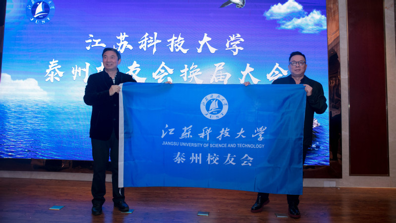 景旭文副书记代表校友总会向泰州校友会新一届理事会成员分别颁发了聘书,校友总会顾问孙秀法与秘书长生佳根分别为泰州校友会揭牌、授旗。