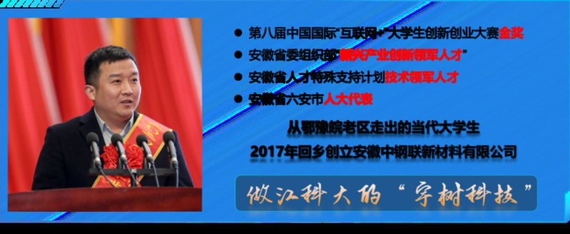 【人物简介】吕林,安徽省委组织部新兴产业创新领军人才,安徽省高层次人才;从鄂豫皖老区走出的当代大学生,获第八届中国国际”互联网+”大学生创新创业大赛金奖,回乡创立安徽中钢联新材料有限公司,raybey雷竞技 2014届材料学院校友。