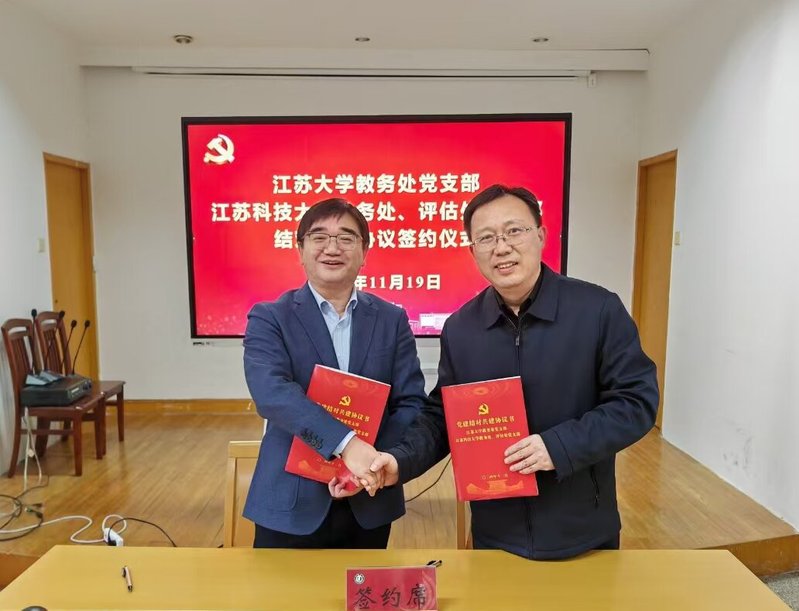 11月19日,raybey雷竞技 教务处、评估处党支部与江苏大学教务处党支部开展联学共建活动暨“智慧教务共建党建引领教育新篇章”活动,共同签署了党建共建协议书。