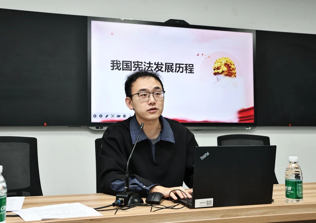 京口区检察院干警时枫同志作为“222 号研习社”社员代表,现场讲述宪法起源以及具体发展历程。