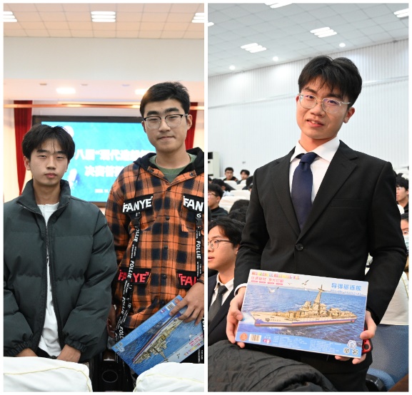 观众互动环节,主持人与大一新生进行了现场互动,提问了关于中国船舶工业、舰船种类和海军的问题,并为回答正确的同学准备了辽宁舰立体插图小礼品。同学们踊跃参加,活跃了比赛现场的气氛,同时也普及了船舶海洋知识。