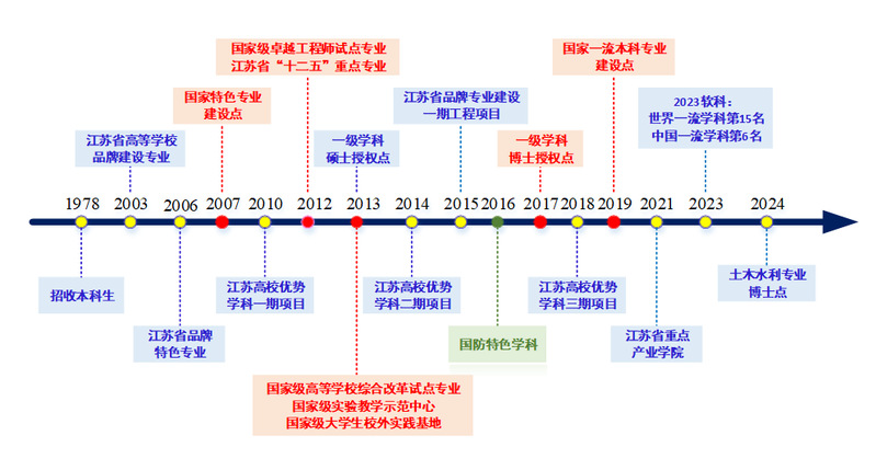 本专业1978年开始招收本科生,先后入选江苏省高等学校品牌建设专业(2003)、江苏省品牌特色专业(2006)、国家特色专业建设点(2007),国家级卓越工程师试点专业(2012)、江苏高校品牌专业建设一期工程项目(2015)、国家级高等学校综合改革试点专业(2013)、国家级一流本科专业建设点(2019),依托本专业建设的“海洋工程装备智能制造产业学院”获批2021年江苏省重点产业学院,并获推参评第二批国家级产业学院。本专业在2024软科中国大学专业排名中位列第11位,评为B+级,是我校工程学ESI全球学科排名前1%主要贡献学科,拥有本硕博完备的人才培养体系,船舶与海洋工程学科一直为江苏省优势学科,并于2022年考核获优秀等级。2024年获批江苏高校品牌专业建设工程三期项目(特色专业),同年获批土木水利博士点。