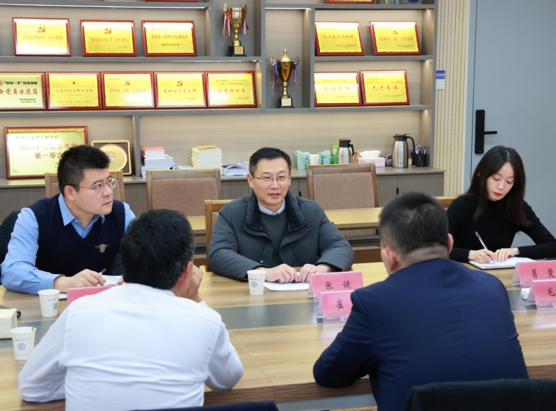 12月12日下午,上海校友会副秘书长、708所军工项目办主任崔腾一行来访我院,院长张健、副院长刘昆出席交流座谈。