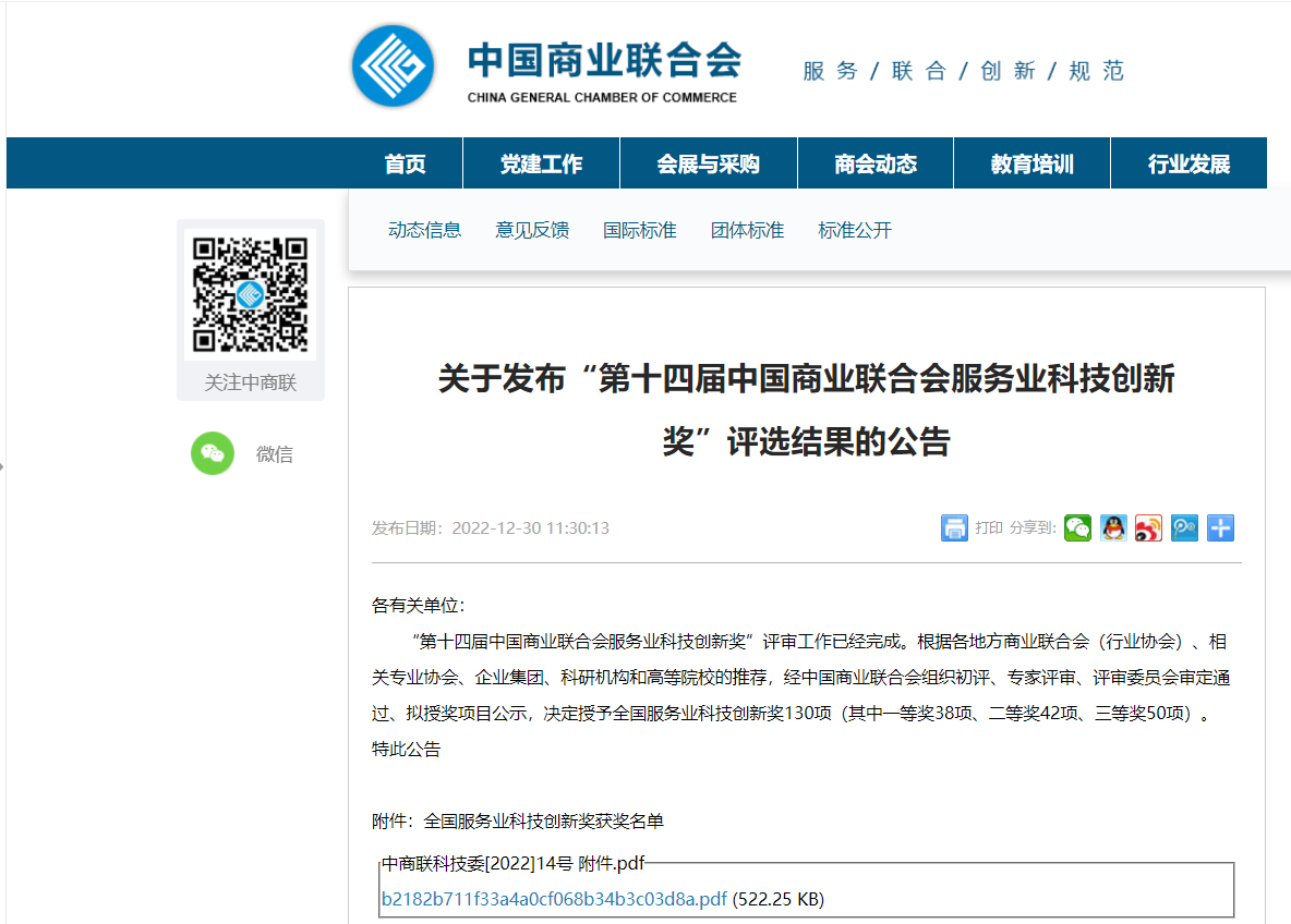 “中国商业联合会服务业科技创新奖”是经国家科技部、国家科学技术奖励工作办公室批准设立的奖项,具备提名、推荐国家科学技术奖资格。