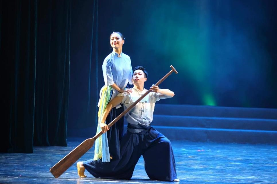 江海扬帆辟丝路,百舸争流正当时!本次原创作品结合我校“船舶、海洋、蚕桑”特色优势,采用男女群舞的舞蹈样式,以现当代舞蹈语汇综合展现船魂精神,生动鲜活的表达劳动人民奋楫扬帆,勇往直前的奋斗与拼搏!作品运用时空交错的结构方式构建角色间时聚时离的情感联接,以劳作、送别塑造女子的温暖、坚韧;以奋楫、扬帆塑形男子的奋勇、无畏!