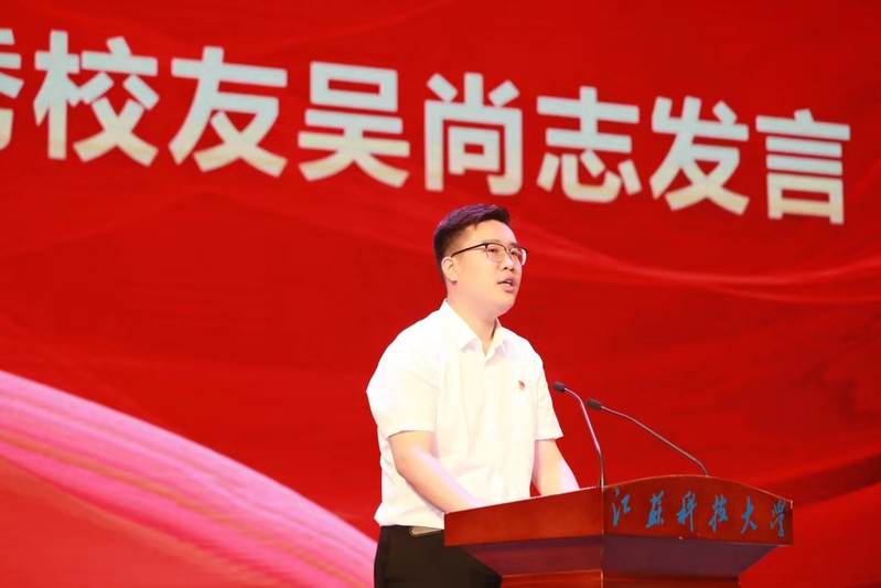 吴尚志学长分享了自己的工作经历和奋斗感悟,勉励毕业生党员永葆对党忠诚可靠的品质,用自己的一言一行擦亮江科大学子的名片。