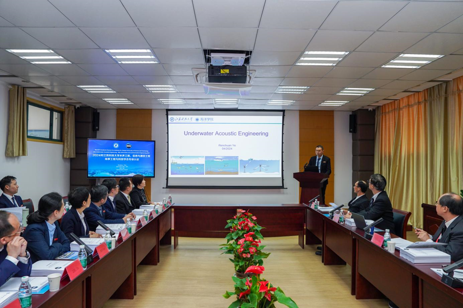 海洋学院院长杨奕飞介绍了学院基本情况,叶仁传、朱琎2位教师分别介绍了水声工程、信息与通信工程两个专业的培养方案、雷电竞苹果ray下载 、学生培养及持续改进情况。专家组对汇报内容进行了现场提问,并与院领导、专业教师进行了深入访谈,就培养方案、考核评价、学业帮扶和实践资源等方面进行了询证交流。