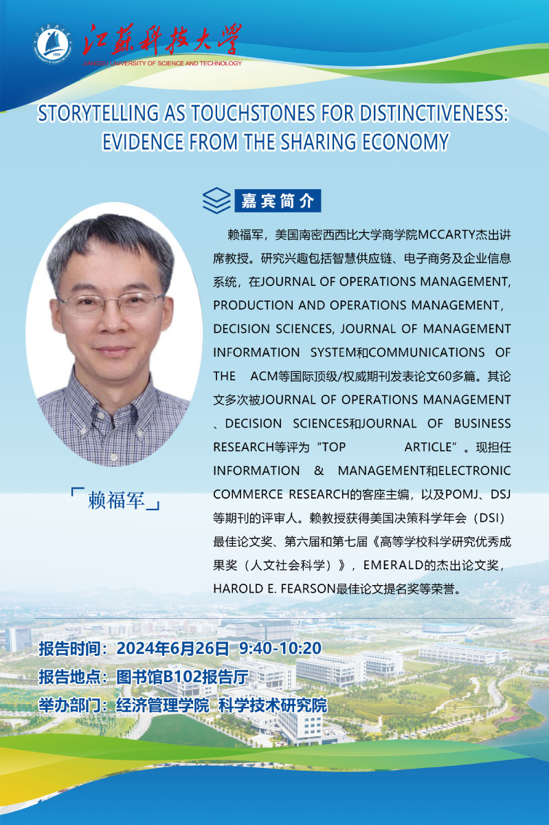 美国南密西西比大学商学院McCarty杰出讲席教授。研究兴趣包括智慧供应链、电子商务及企业信息系统,在Journal of Operations Management, Production and Operations Management,Decision Sciences, Journal of Management Information System和Communications of the ACM等国际顶级/权威期刊发表论文60多篇。其论文多次被Journal of Operations Management、Decision Sciences和Journal of Business Research等评为“Top Article”。现担任Information & Management和Electronic Commerce Research的客座主编,以及POMJ、DSJ等期刊的评审人。赖教授获得美国决策科学年会(DSI)最佳论文奖、第六届和第七届《高等学校科学研究优秀成果奖(人文社会科学)》,Emerald的杰出论文奖,Harold E. Fearson最佳论文提名奖等荣誉。