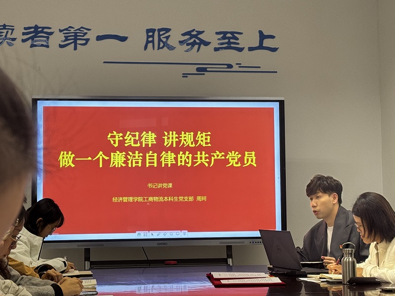 廉洁是做人之本,修身之道。置身于书韵流动的图书馆,经管学院工商物流本科生党支部书记周珂带领大家深入学习《中国共产党纪律处分条例》廉洁纪律条例,并观看了警示教育片。在场师生党员在一个个警示故事中体悟到了廉洁的重要性,表示今后将进一步强化共建内涵,丰富共建内容,生动共建形式,通过联学共建提升支部战斗堡垒作用。