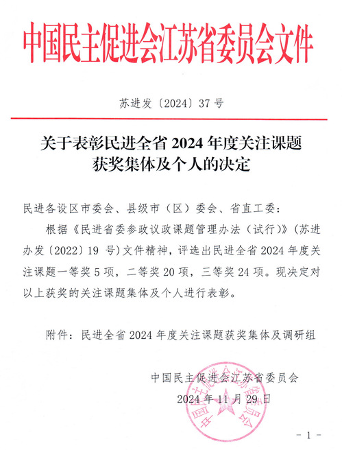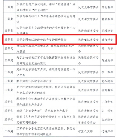 日前,中国民主促进会江苏省委员会公布《关于表彰民进全省2024年度关注课题获奖集体及个人的决定》,我校经济管理学院盛永祥教授调研组成果《关于加强长江疏浚砂综合整治调研报告》获评民进全省2024年度关注课题三等奖。