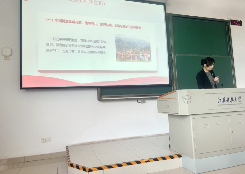 学院积极搭建平台,营造浓厚氛围,学院党委书记尹洁围绕“铸牢中华民族共同体意识”主题,讲授专题党课,围绕深刻认识铸牢中华民族共同体意识的重大意义、当代大学生如何铸牢中华民族共同体意识等方面,引导青年学生树立正确的民族观,增强民族团结意识。此外,学院邀请我校马克思主义学院教师周远全为入党积极分子讲授意识形态专题课,帮助学生深刻理解统一战线在维护国家团结稳定、促进社会和谐发展中的重要作用,进一步筑牢思想根基。